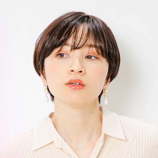 前髪は中をしっかりめにつけて表面は軽く整え、最後に全体のバランスを整えます。
