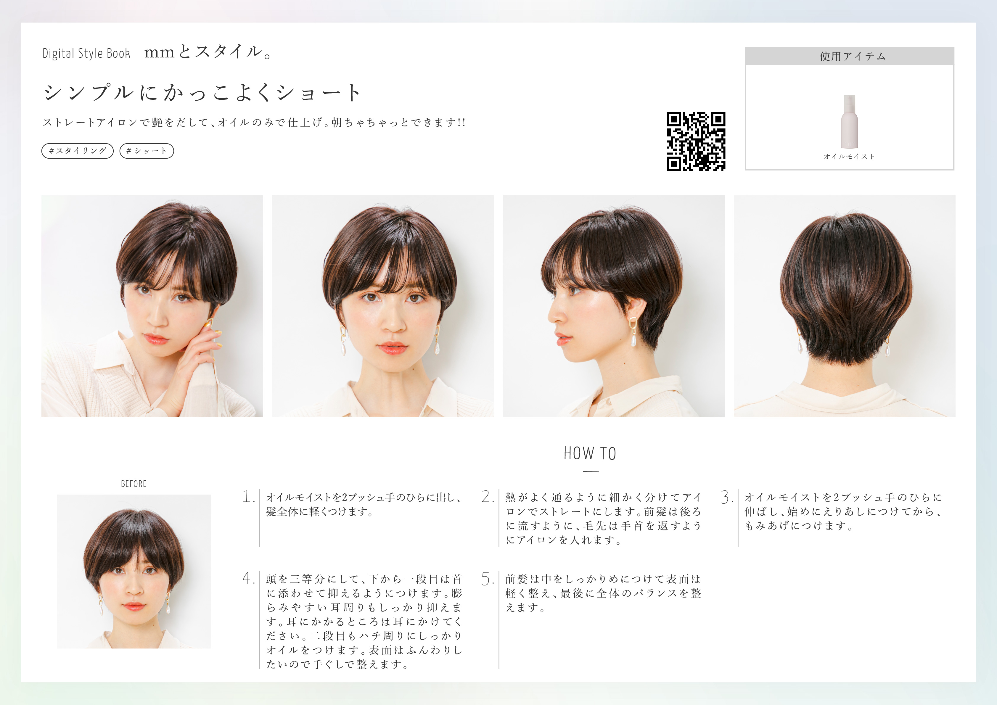 ストレートアイロンで艶をだして、オイルモイストのみで仕上げ。朝ちゃちゃっとできます!!