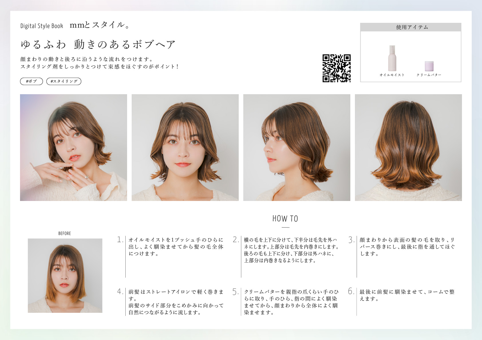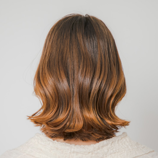 顔まわりの動きと後ろに沿うような流れをつけます。