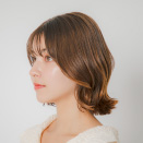 前髪のサイド部分をこめかみに向かって自然につながるように流します。