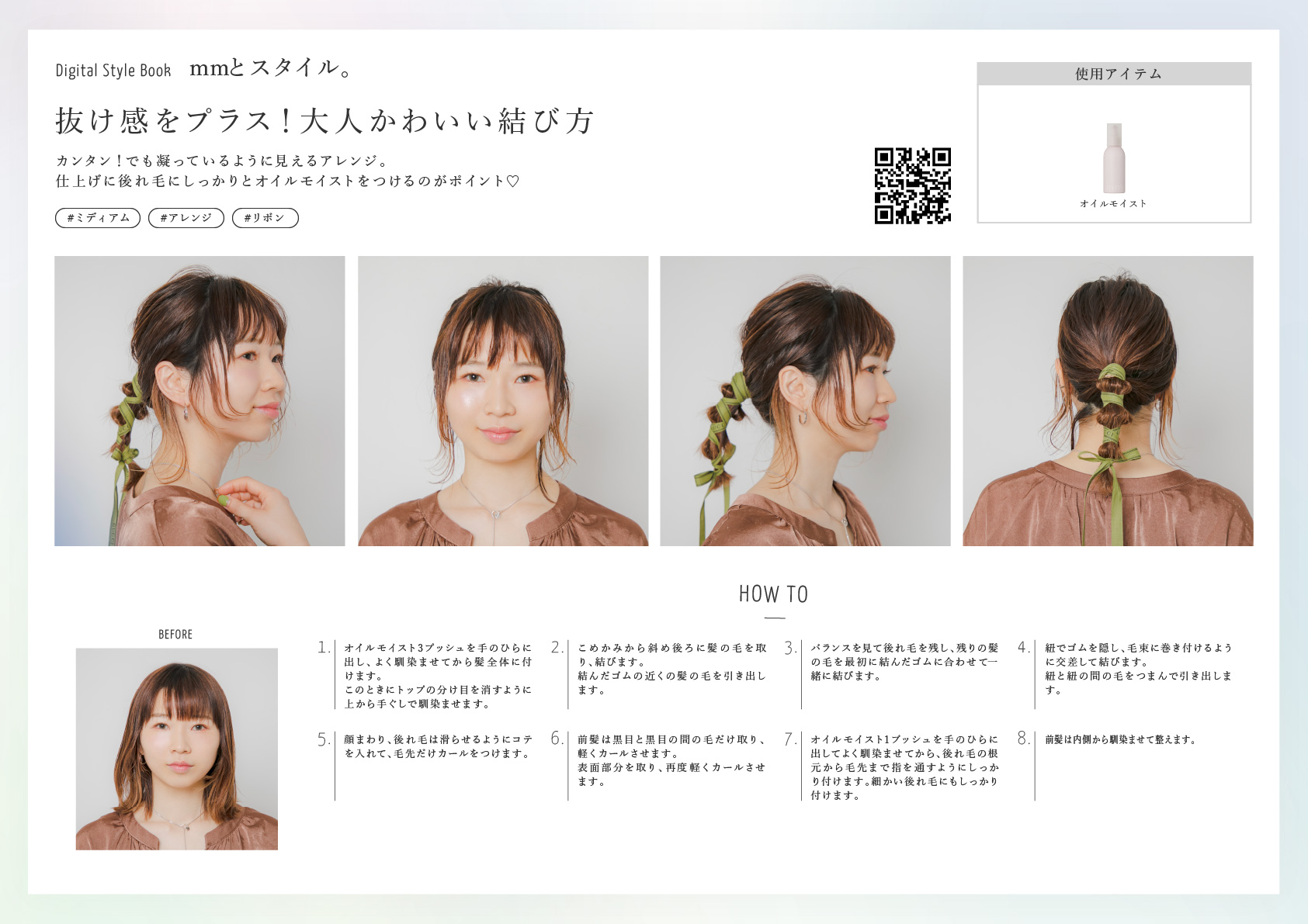 仕上げに後れ毛にしっかりとオイルモイストをつけるのがポイント♡