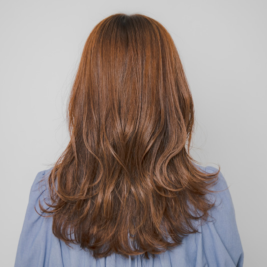 顔まわりを少しだけ取り、毛先だけ外巻きにします。