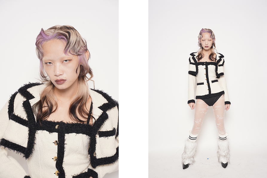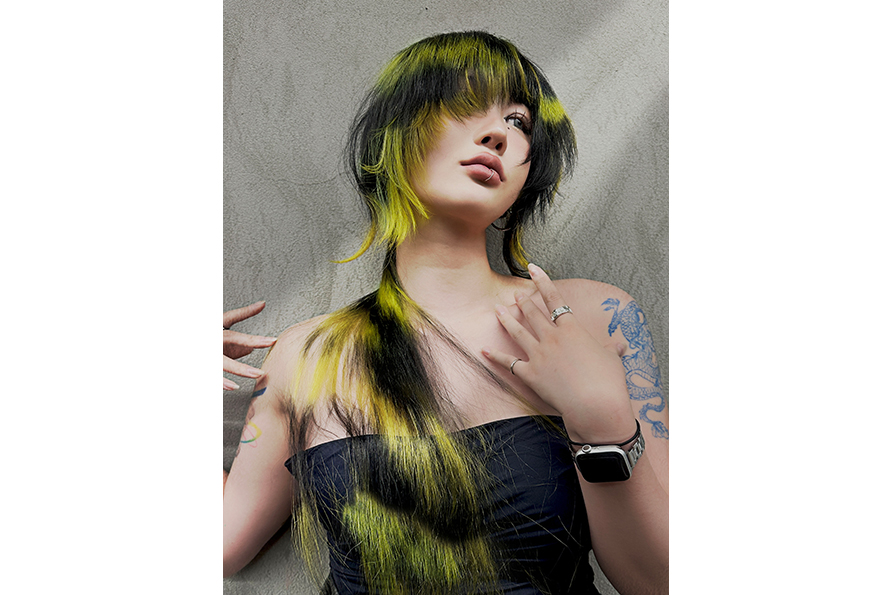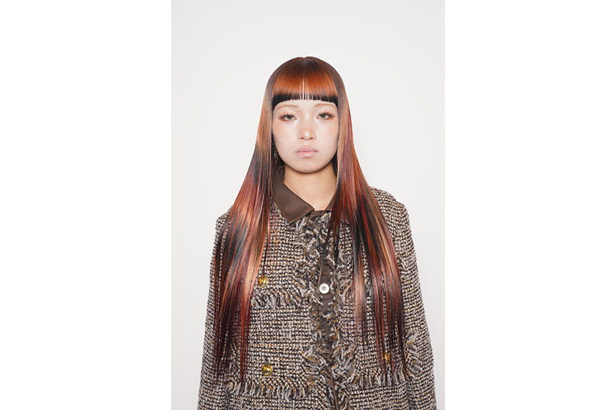 グローバルアワードを受賞でき、とても嬉しいです。日本に来てショーを楽しみながら、他のデザイナーの方々と交流できたことも貴重な経験でした。今回は“重なり”というテーマのもと、積み重なることで生まれるシナジーを表現。カットではあえてつながらない段差をつくり、異なる色同士の調和を意識しました。普段から少し強めのユニークなスタイルが好きなので、これからも自分らしい道を進み続けたいです。